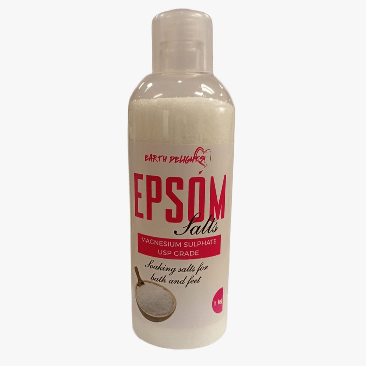 Add 2 cups of Earth Delights Epsom Salt to warm, running bathwater. Soak for 20 minutes to